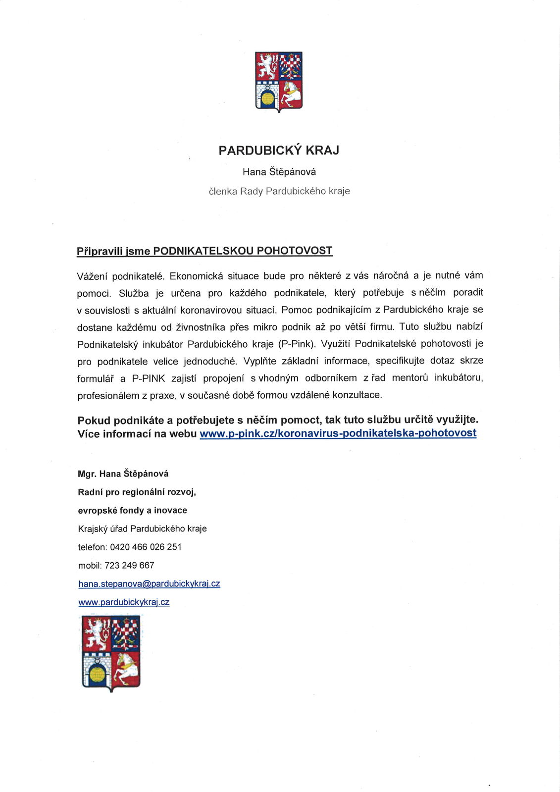 Úvod > Obec > Aktuality > Podnikatelská pohotovost - Pardubický kraj